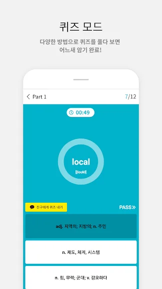 - 재미있게 퀴즈를 풀면서 단어를 암기하니까! 단어 암기가 지루하지 않아요.