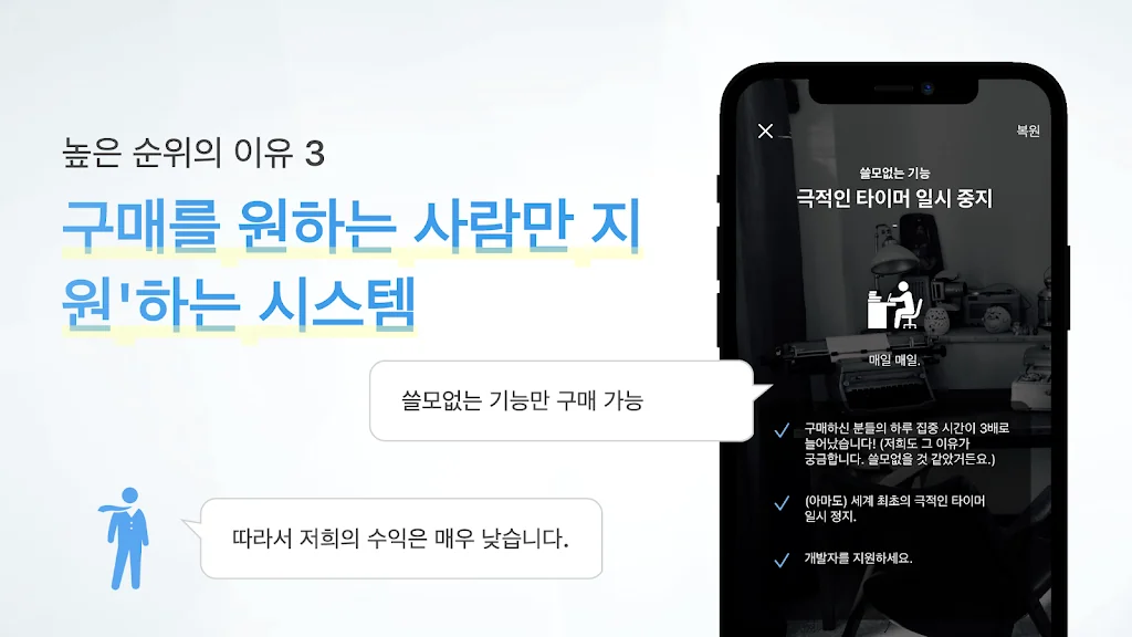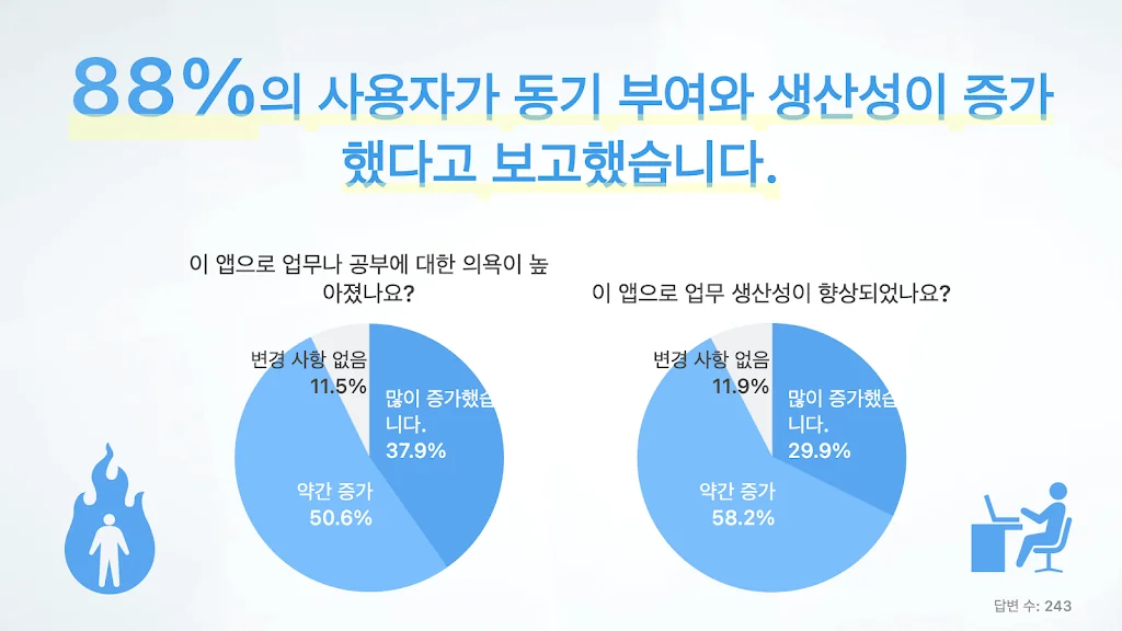 이 앱이 당신의 학습과 작업에 집중할 수 있도록 도와줄 것을 기대합니다. 또한 당신의 일상을 의미있고 번영스럽게 만들어줄 것입니다.