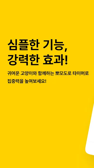 이렇게 해서 뽀모캣! 냥이 친구와 함께 하는 즐거운 뽀모도로 시간! 어플 소개를 마치도록 하겠습니다.