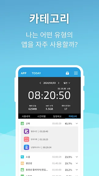 오늘의 앱 사용량, 스마트폰 사용 시간, 습관 달성률을 한눈에 볼 수 있어요!