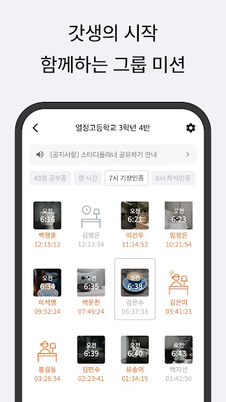 스터디원들의 실시간으로 공부중인지 휴식중인지 알 수 있어요