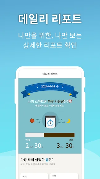 데일리 리포트로 나의 하루 스마트폰 총 사용량을 자세히 알 수 있어요!