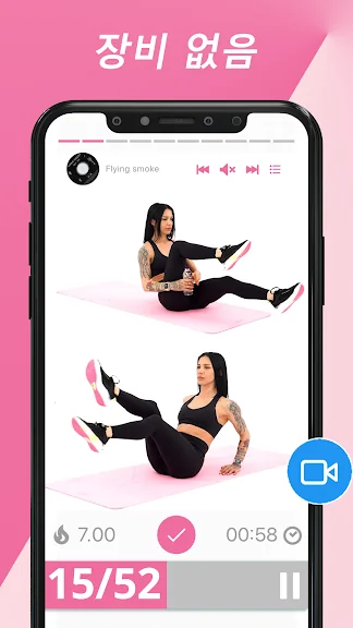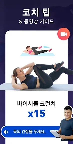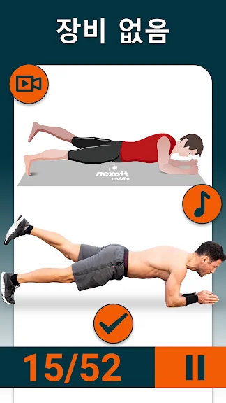 애니메이션 및 동영상 도움을 통해 운동 할 때마다 올바른 몸의 형태를 유지할 수 있습니다. 아무런 장비도 필요 없으므로 언제 어디서나 쉽게 운동 할 수 있습니다.