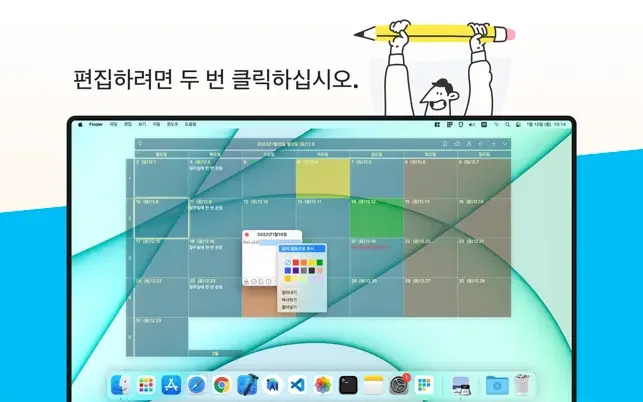 일정/기념일에 원하는 색상을 지정하여 분류하고, 700여종의 스티커로 강조해서 꾸밀 수도 있습니다.