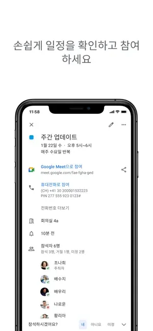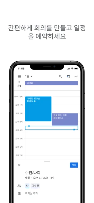 Google Calendar는 Google Workspace에 포함된 제품입니다. Google Workspace를 사용하여 팀원들은 다음을 할 수 있습니다.