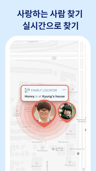 📍 정확한 위치를 나타내는 분명한 지도입니다. 지도 위에 핀을 놓으면 가족 구성원과 자신의 위치를 한눈에 확인할 수 있습니다.