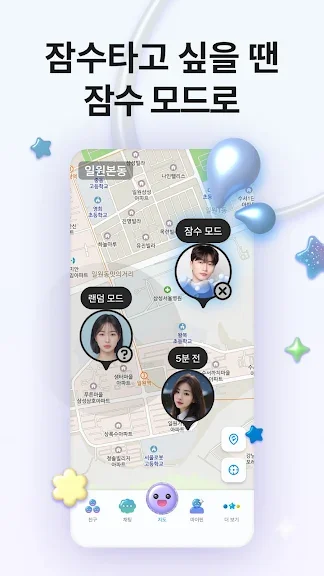 가끔 위치 공개가 부담스러울 땐 친구별로 잠수 모드 & 랜덤 모드를 설정할 수 있어요.