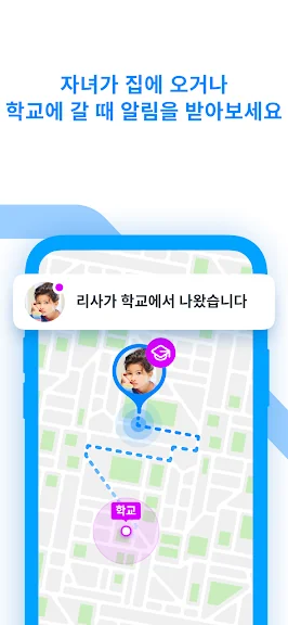 장소 (학교, 집, 공원 등) 를 추가하고, 자녀가 해당 장소에 출입시 알림을 받으세요.