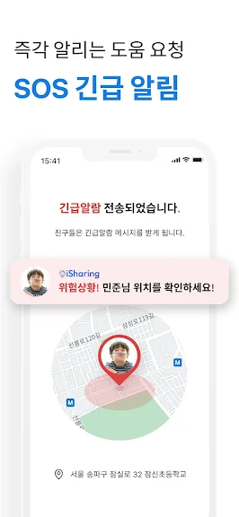 긴급 상황에서, 자녀는 SOS 버튼을 눌러 당신에게 알릴 수 있어요.