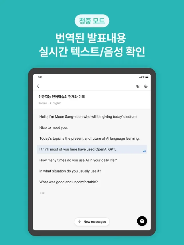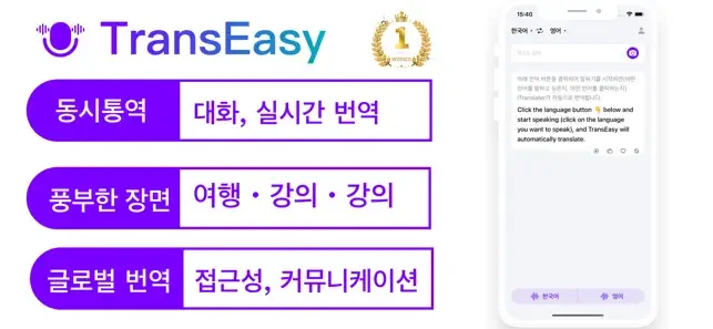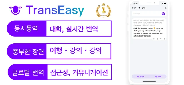 [실시간 번역] 말하기, 번역, 동시통역을 지원합니다.