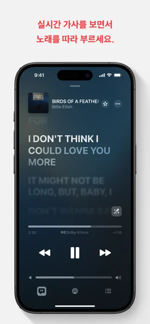 들리는 노래에 맞춰 제공되는 가사를 따라 부를 수 있습니다.