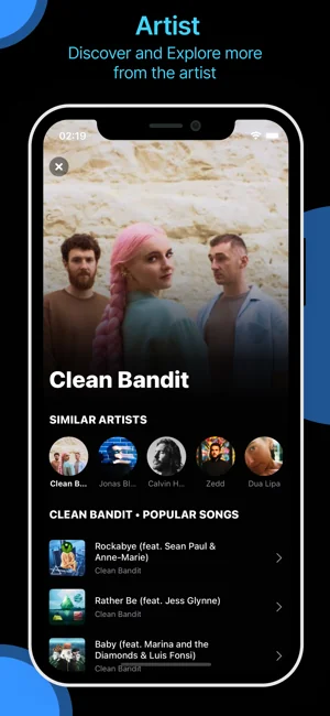 노래 이름 찾기 내에서 인식된 노래에 대한 모든 정보를 얻고 노래 제목, 해당 아티스트의 인기 트랙 및 앨범을 식별합니다.