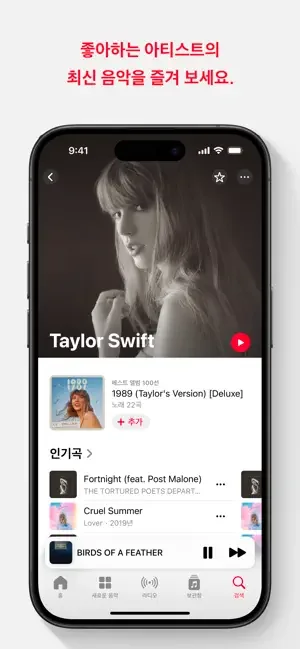*Apple Music에서 음악을 감상하거나 뮤직 비디오와 노래 가사를 확인할 수 있습니다.