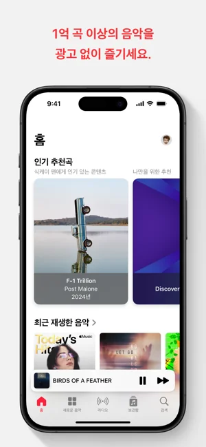 1억 곡의 노래, 수천 개의 엄선된 플레이리스트 및 내가 알고 있고 좋아하는 아티스트의 오리지널 콘텐츠를 광고 없이 무제한으로 이용할 수 있습니다. Dolby Atmos를 통한 공간 음향으로 모든 방향에서 울려 퍼지는 사운드를 들을 수 있습니다.