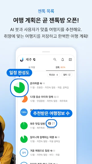 젠트립 (JenTrip) 은 제주도의 혼행(혼자하는 여행), 소그룹 여행, 자연 및 마을 여행을 준비하는 솔로 트래블러의 여행계획을 좀 더 편리하고 안전하게 지원하는 앱입니다.