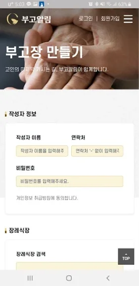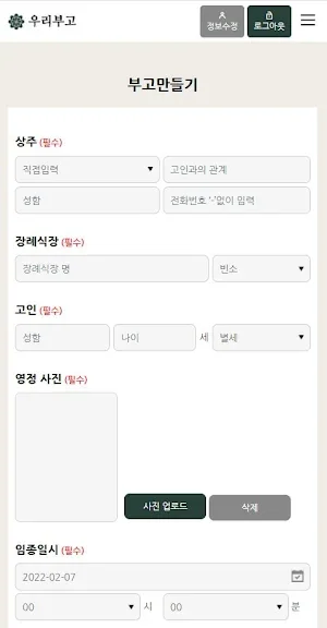 모바일 부고장 - 우리부고 어플에 대한 스크린샷 정보가 필요하시다면 아래 이미지를 참고하시기 바랍니다.
