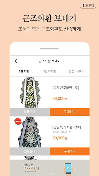 - 합리적인 금액의 근조화환을 모바일에서 편리하게 보내실 수 있도록 상주와 조문객을 위한 모바일 부고장 근조화한 주문 및 당일 배송 서비스를 제공하고 있습니다.