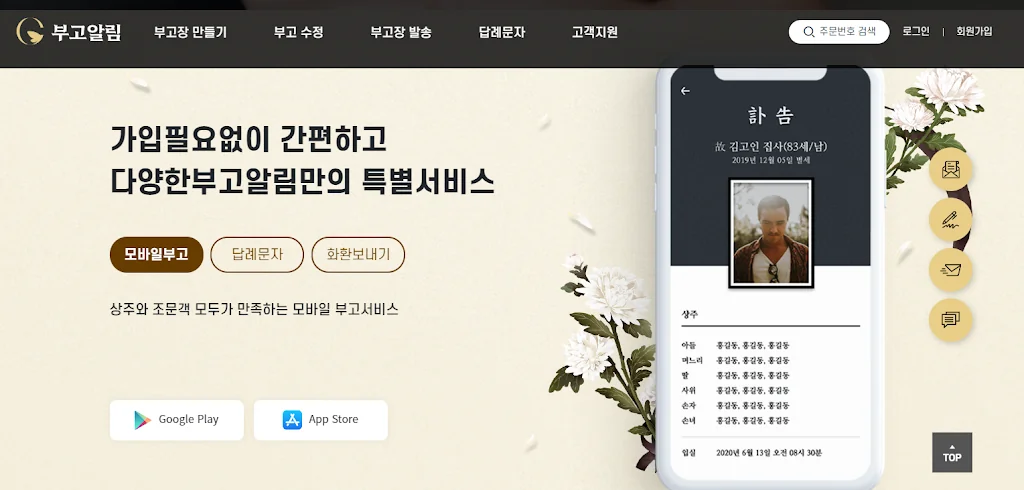 -부고의 예법을 세세한 부분까지 고려한 서비스