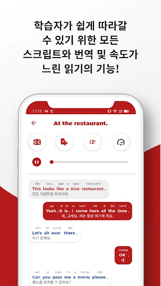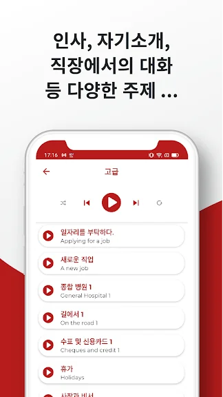 토종에게서 회화를 들으면서 토종과 같은 억양과 음성으로 완전한 문장을 되풀이하도록 합나다. 이 앱덕분에 현지인처럼 말하는 방법, 발음, 쉬는 방법, 억양하고 알아든는 기능을 개선할 뿐만아니라 일상에서 문제를 묻고 답하는 유용한 단어와 문구까지 배울 수 있습니다.