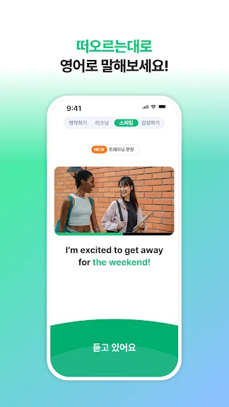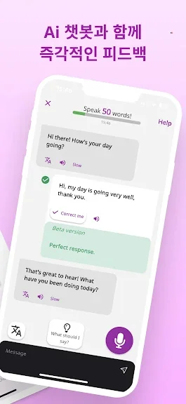 영어 스피킹 트레이닝 AI 어플에 대한 스크린샷 정보가 필요하시다면 아래 이미지를 참고하시기 바랍니다.