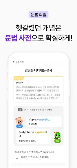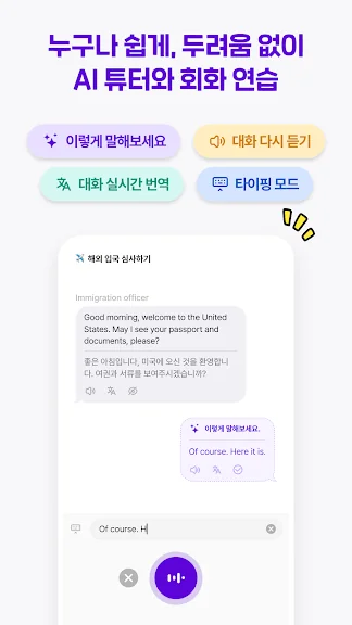 어휘 및 발음 향상: 영어 어휘를 확장하고 실시간 피드백을 통해 발음을 연습하세요. 억양을 개선하고 미국식 영어 발음을 익혀 원어민 수준에 더 가까워지세요.