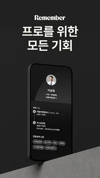 아래는 리멤버 - 경력채용, 명함관리, 커뮤니티 어플에 대한 스크린샷 정보입니다.