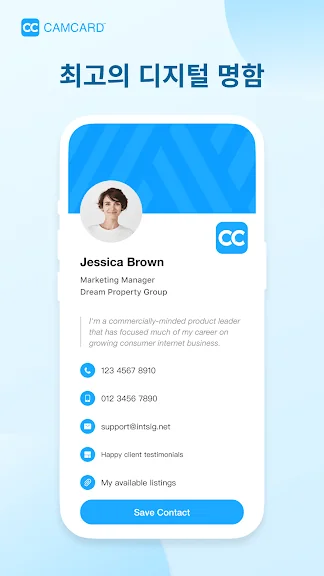CamCard는 명함을 정리하거나 네트워크를 확장하려는 사람들에게 특히 유용합니다. 마케팅 전문가, 세일즈 담당자, 혹은 업무상 명함 관리가 필요한 모든 분께 추천드립니다. 디지털 시대에 맞는 명함 관리로 효율성과 전문성을 경험해 보세요.