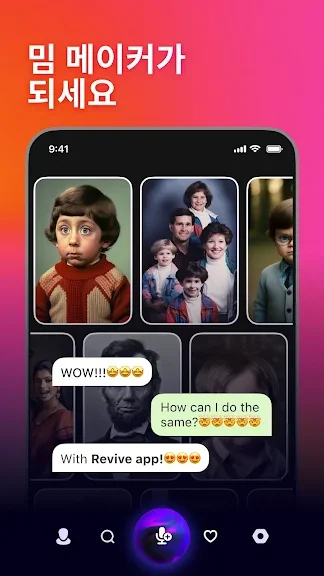Revive는 얼굴 앱입니다. 이 사진 애니메이터를 사용하면 쉽게 얼굴을 춤추게 할 수 있습니다. 그것은 사진용 애니메이션과 재미있는 비디오의 선별된 선택을 제공합니다. 사진을 재미있는 비디오로 애니메이션하고 다양한 트렌디한 효과로 그것들을 눈에 띄게 만들고 Monroe, Queen, Rihanna 등처럼 노래하세요. 또한 meme 만들기 옵션으로 만화 애니메이션을 만들 수도 있습니다! AI 비디오 제너레이터를 사용해 지루한 아바타를 살리세요!