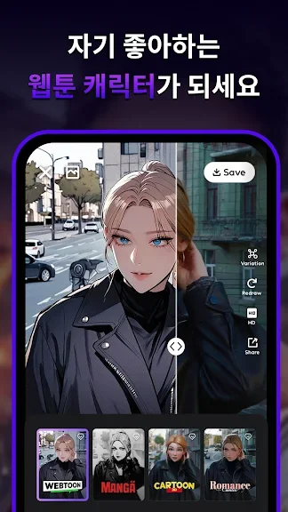 한 가지 스타일에 만족할 필요가 없습니다. AI 이미지 생성기를 통해 다양한 재미있고 트렌디한 예술 스타일을 탐험해보세요. 만화책 느낌부터 귀여운 클레이메이션, 세련된 일러스트레이션에서 생동감 있는 만화까지 - 앱을 통해 사진이나 아이디어를 원하는 예술 스타일로 변환할 수 있는 자유를 제공합니다. 탭 한 번으로 스타일을 쉽게 전환하고, 창작물이 새로운 생명을 얻는 것을 지켜보세요.