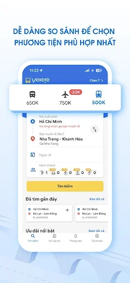 Vexere - 동일한 화면에서 가격, 출발 시간, 비행기, 코치, 기차 간의 총 이동 시간을 비교할 수 있는 베트남 최초의 애플리케이션으로, 이동 수단을 쉽게 선택하고 가장 최적의 여행을 할 수 있습니다.