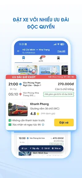 - 항상 우대 티켓을 예약하세요. Vexere는 배송 파트너가 특히 비수기에 점유율을 높이기 위한 인센티브 프로그램을 구축할 수 있도록 마켓플레이스 시스템을 구축했습니다.