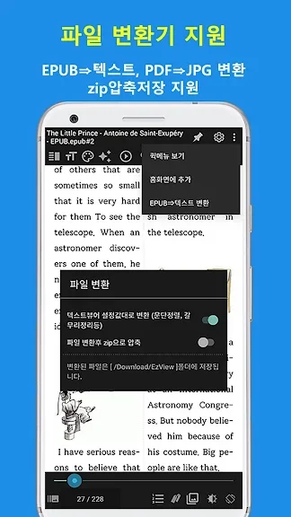 앱은 텍스트 뷰어와 만화 뷰어 두 가지 기능을 중심으로 제공됩니다. 텍스트 뷰어는 TXT, CSV 등 다양한 파일 형식을 지원하며, 글꼴 변경, 줄 간격 조절, 배경 색상 커스터마이징과 같은 섬세한 설정이 가능합니다. 또한, 음성 읽어주기 기능과 함께 다국어 텍스트도 문제없이 지원하여 독서 경험을 새롭게 합니다.